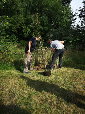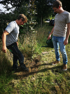 Wir trafen uns an der Kirche um einen Baum für diese Aktion zu pflanzen.