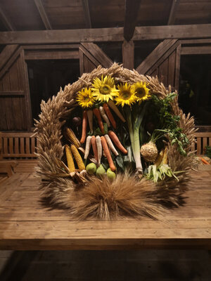 diesjährigen Erntekranz zu bind und zu schmücken.